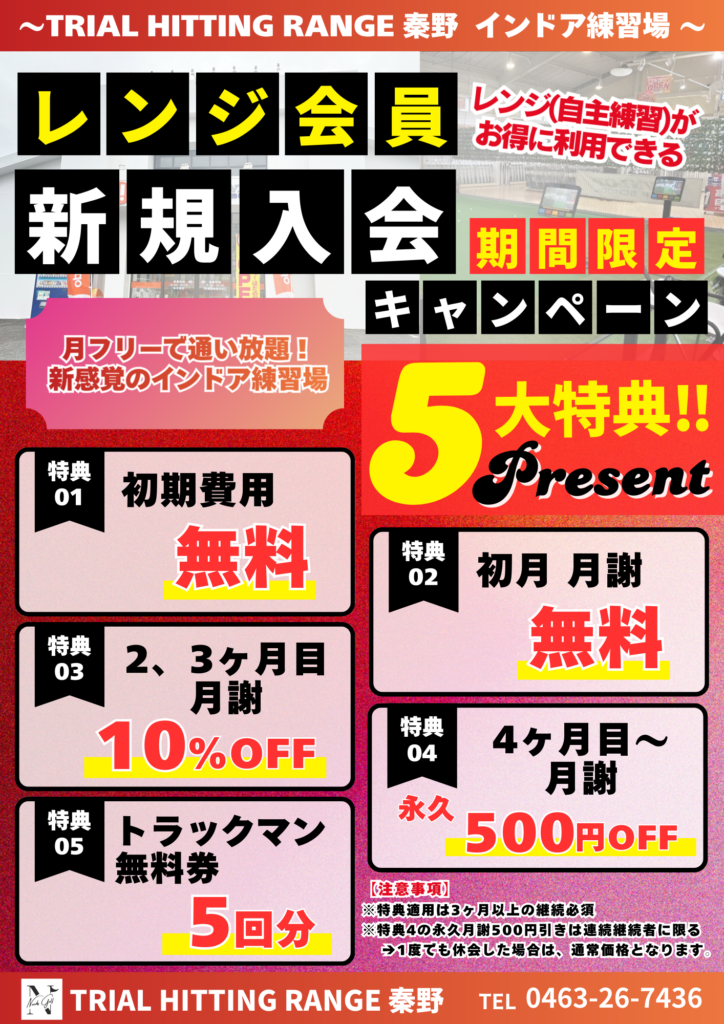 レンジ会員(自主練習)★新規入会キャンペーン実施中‼